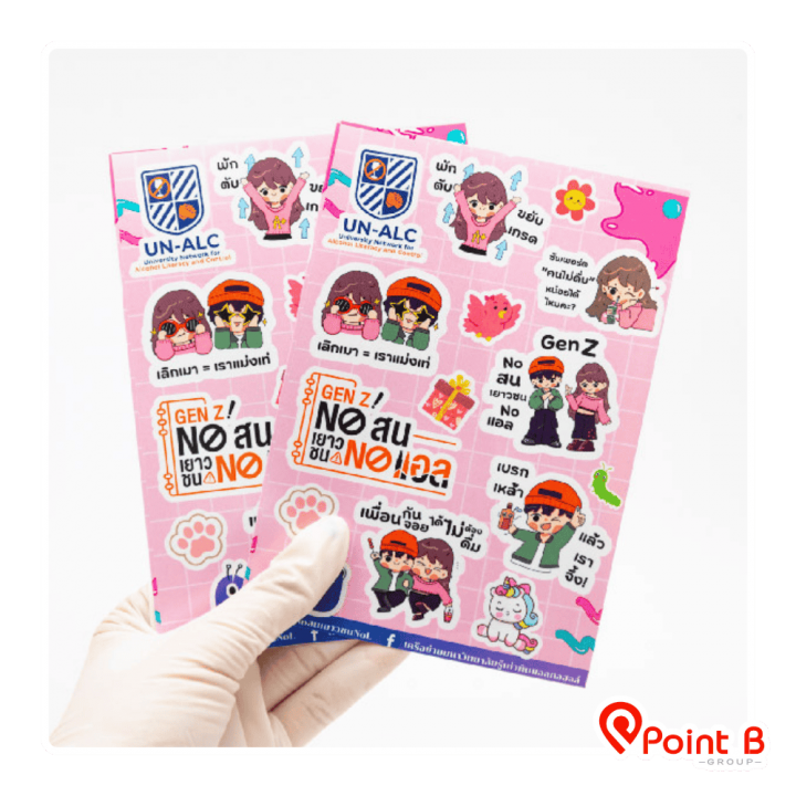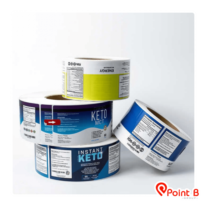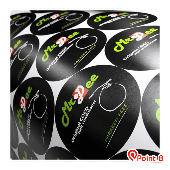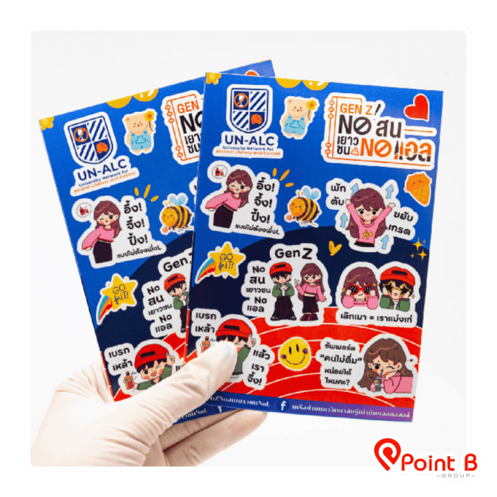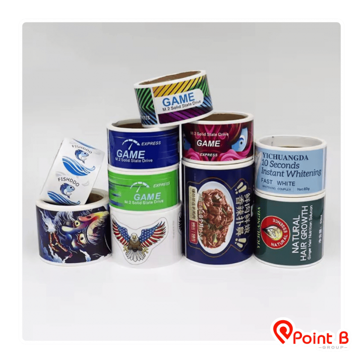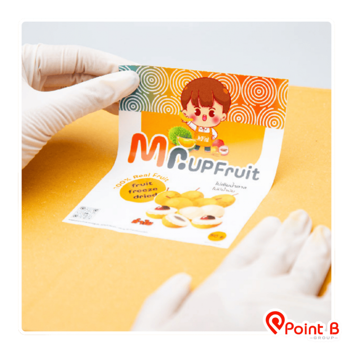 โรงงานผลิตสติ๊กเกอร์ ฉลากสินค้า  ครบวงจร (One Stop Service) โดย บริษัท พอยท์ บี กรุ๊ป จำกัด รองรับงานวอลุ่มสูงและงานด่วน ด้วยเทคโนโลยี Digital & Inkjet ความละเอียดสูง มั่นใจคุณภาพระดับสากล